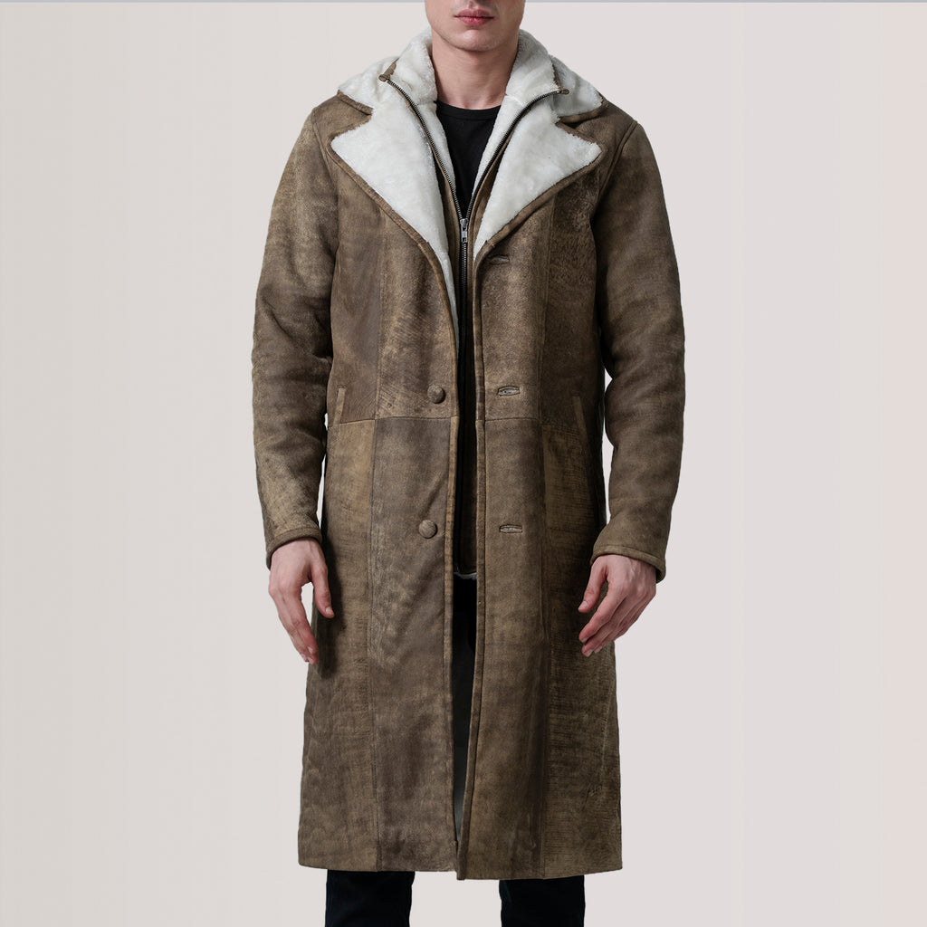 Cai Distressed Brown Leather Shearling Coat