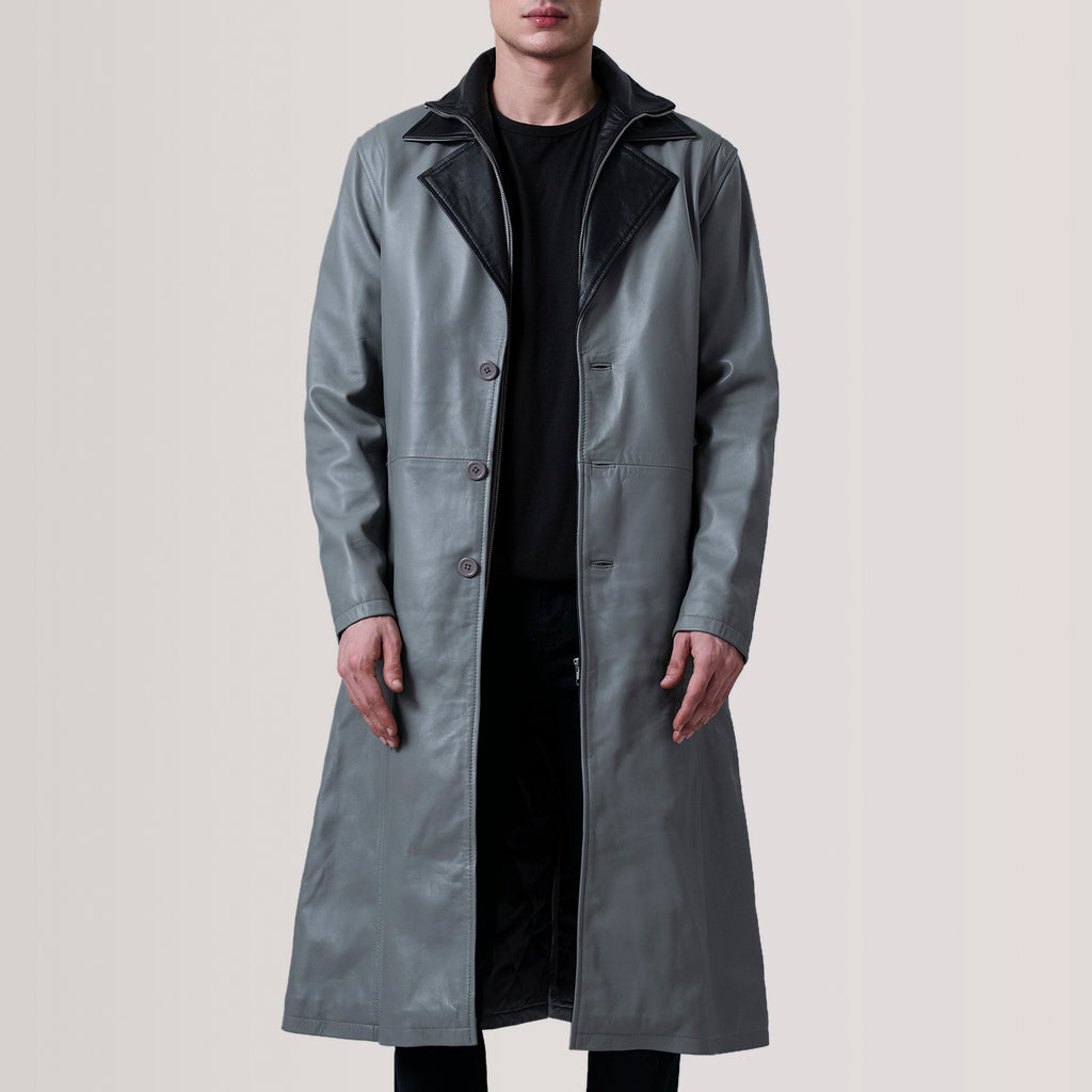 Charlton Grey Leather Single Breasted Coat