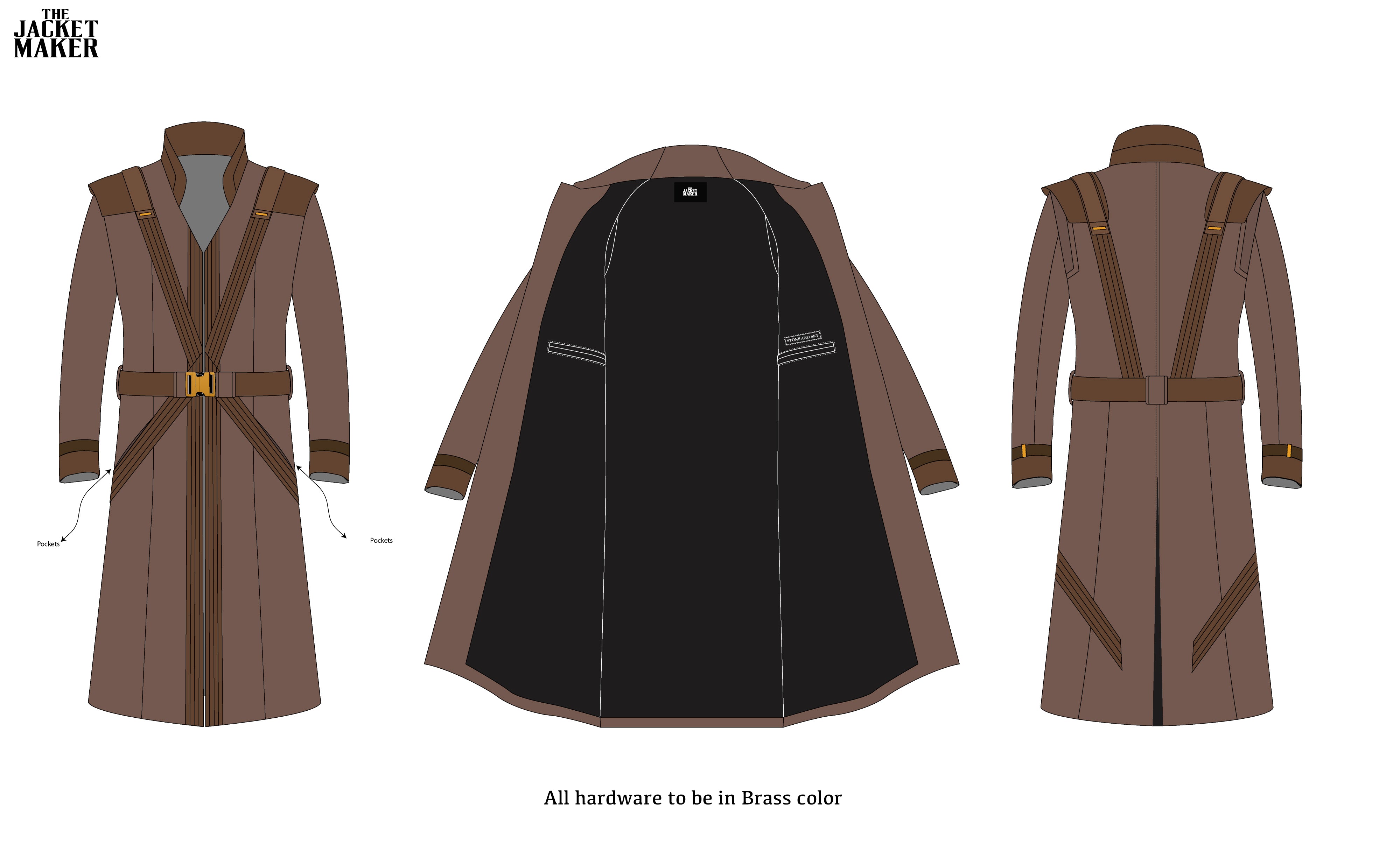 • Decorative brass studs on the upper right chest & left chest on the front torso, and on the upper back (as per mock & references)