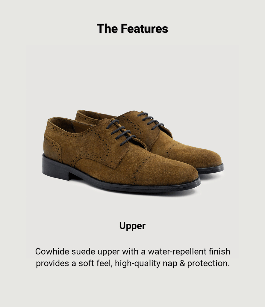 - Suede Cowhide Leather Upper (Durable Water Repellent Finish)